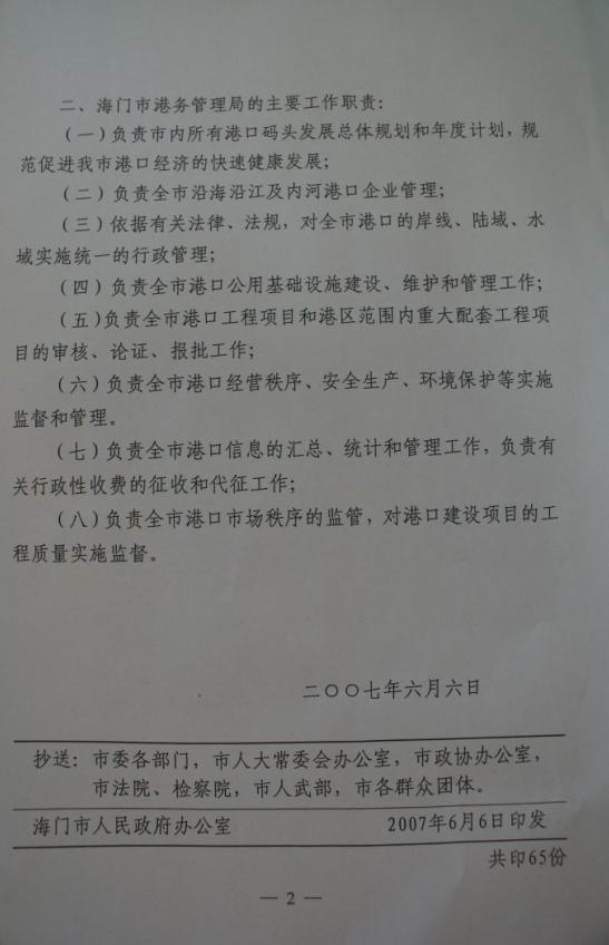 市政府办公室关于海门市交通局增挂“海门市港务管理局”牌子的通知